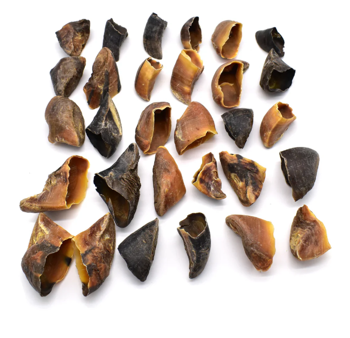 Le sabot de bœuf est plus grand et plus dur, ce qui le rend particulièrement adapté aux chiens puissants ou de grande taille. À l’inverse, le sabot de veau, plus petit et plus tendre, conviendra davantage aux chiens de petite à moyenne taille ou aux mâcheurs plus modérés.